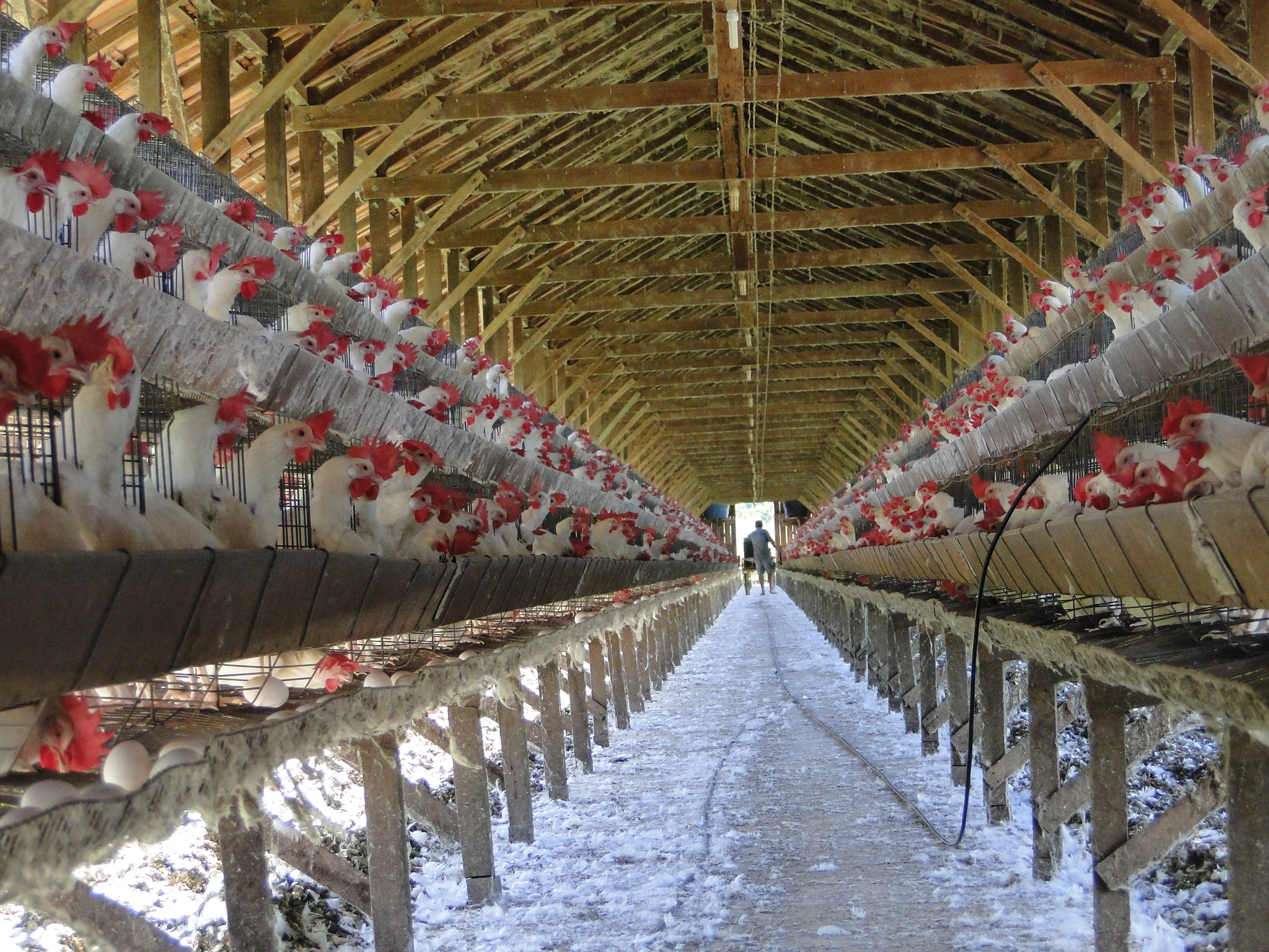 Cada propriedade possui no mínimo três galpões para manter a produção. Um deles serve como pinteiro, onde ficam os animais de um a 45 dias. Em seguida, os animais com mais de 45 dias são transferidos para gaiolas, onde ficam confinadas. Neste galpão, as galinhas são preparadas para a idade produtiva. Seus bicos são cortados para que todos os nutrientes da ração sejam digeridos, uma vez que com o bico, elas tendem a realizar a catação de determinados grãos.