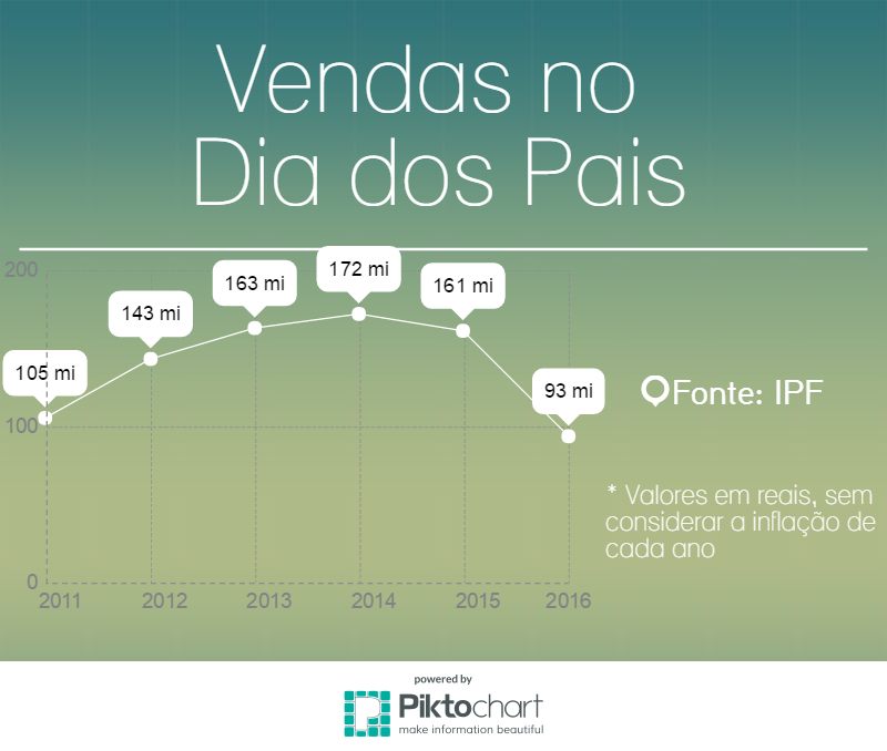 Em todo o país, as vendas na semana comemorativa tiveram o pior resultado desde 2005, de acordo com o Indicador Serasa Experian de Atividades do Comércio. Na semana do dia 8 à 14 de agosto, as vendas caíram 8,8% em relação ao mesmo período do ano anterior. No final de semana do Dia dos Pais, de 12 a 14 de agosto, o comércio registrou baixa de 8,7% em relação ao mesmo período do ano anterior.