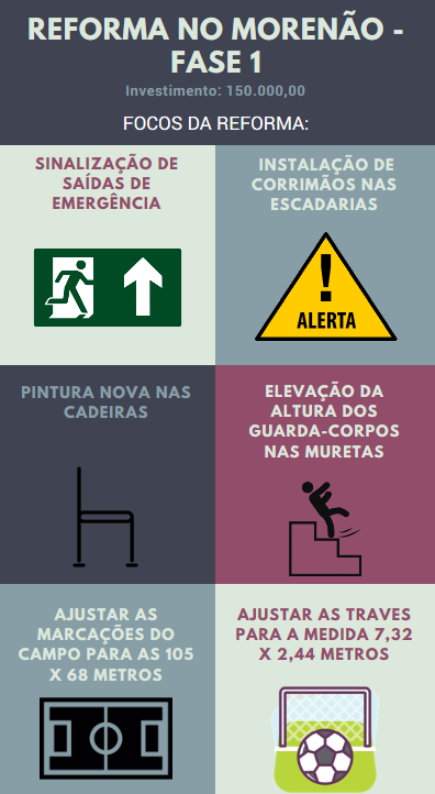 Ele explica que existem outras medidas de segurança não concluídas, como a falta de espaços adequados para a atuação de órgãos de segurança. "Os prazos dados pelos laudos da Polícia Militar são maiores". A Federação de Futebol do Mato Grosso do Sul (FFMS) tem 120 dias para concluir as obras. Segundo o vice-presidente e coordenador de competições da FFMS, Marco Antônio Tavares a Federação assumiu o compromisso de cumprir as exigências e também criar uma sala adequada para que a segurança do local seja garantida.