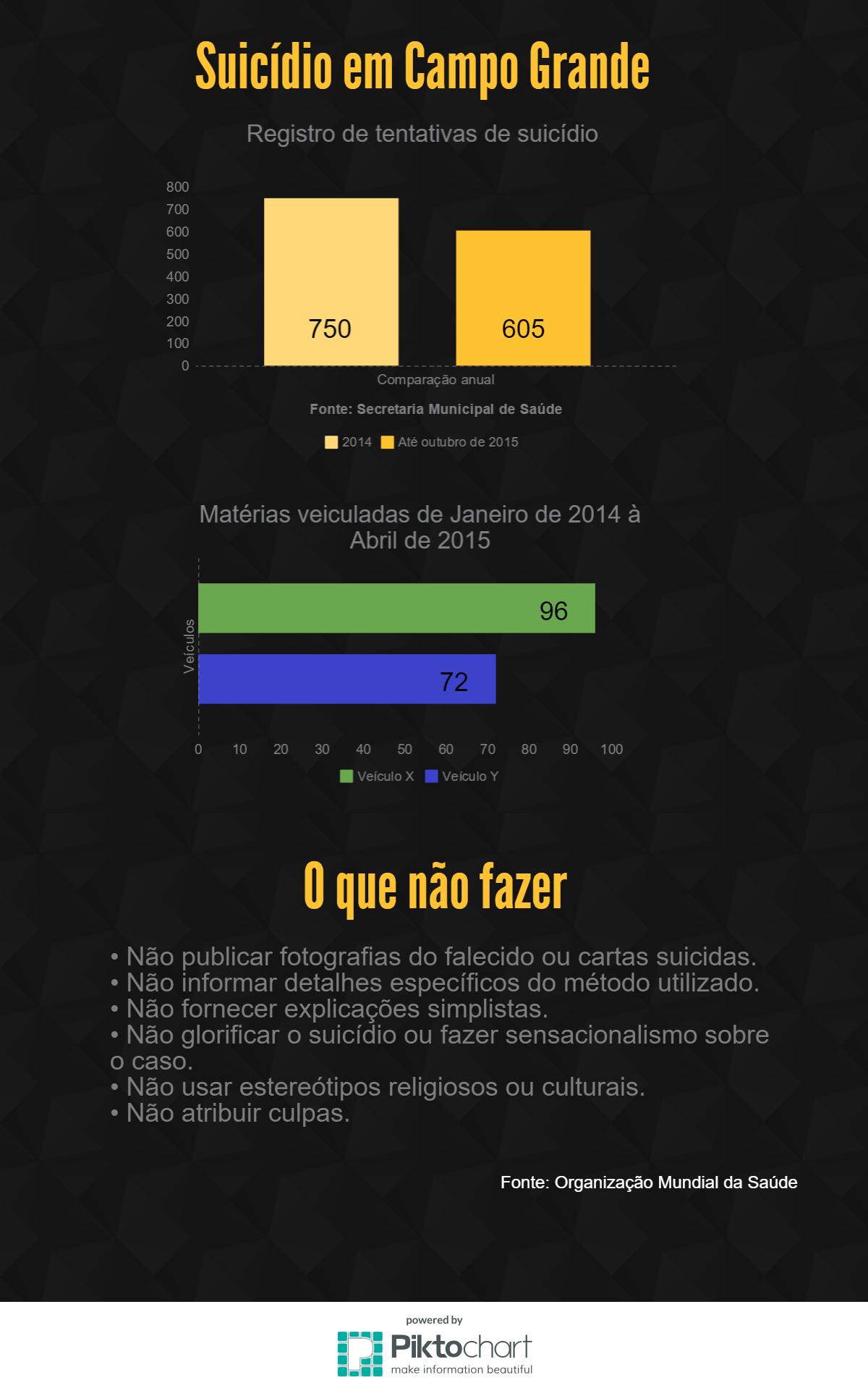 O número de casos de suicídio cresceu cerca de 12% em Campo Grande. De acordo com a Secretaria Municipal de Saúde, até o final de outubro de 2015, foram registrados 605 casos. No ano anterior foram 750 tentativas de suicídios notificadas. O debate sobre a mídia divulgar ou não as ocorrências é influenciado pelos índices e pela forma como as notícias são apresentadas.