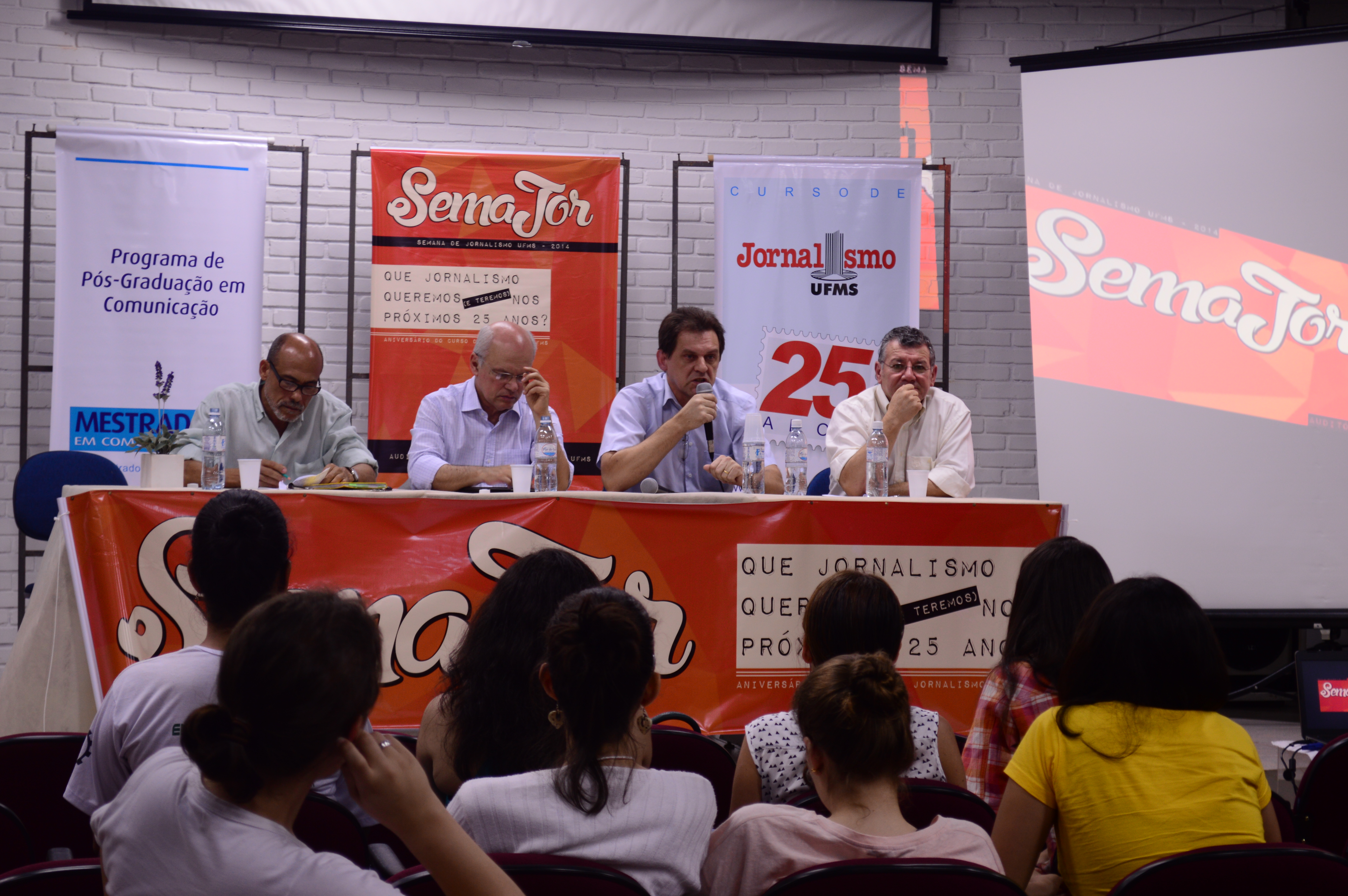 O piso salarial do jornalista em Mato Grosso do Sul é o mesmo depois de 25 anos. A questão foi um dos temas tratados no debate "A profissionalização do mercado jornalístico sul-mato-grossense nos últimos 25 anos", realizado na Semana de Jornalismo da Universidade Federal de Mato Grosso do Sul (UFMS), que teve a participação do presidente da Federação Nacional dos Jornalistas (Fenaj), Celso Schröeder, do diretor de jornalismo do SBT/MS, Neri Kaspary, do professor de jornalismo da UFMS, Edson Silva, e como mediador do debate, professor Gerson Luiz Melo Martins, além de alunos e professores.