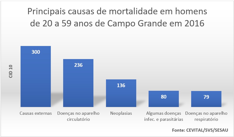 O tabaco é uma das principais causas de morte entre homens em Campo Grande. Em 2016, 831 homens entre 20 e 59 anos faleceram na capital, deste total, 236 (28,8%) foram casos de doenças do aparelho circulatório. Segundo a Gerente Técnica de Atenção à Saúde do Homem da Secretaria Municipal de Saúde (Sesau), Rejane Sartor as informações são da Base de Dados do Sistema Único de Saúde (SUS) e a incidência das mortes está relacionada à falta de autocuidado e atenção dos homens pela própria saúde.
